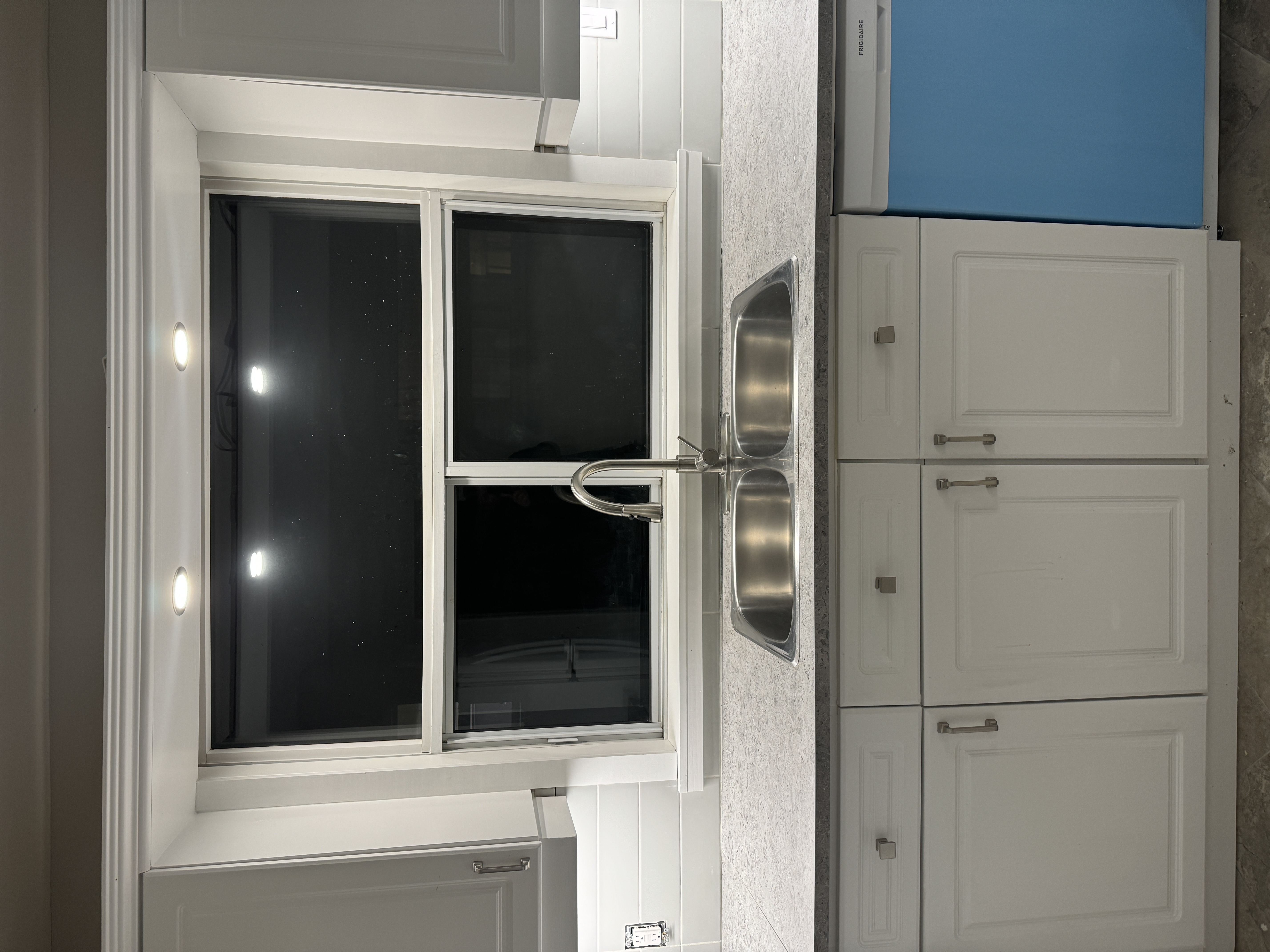 Retrofitted LED recessed lights and LED undercabinet lighting provide additional task lighting over the sink and prep areas.