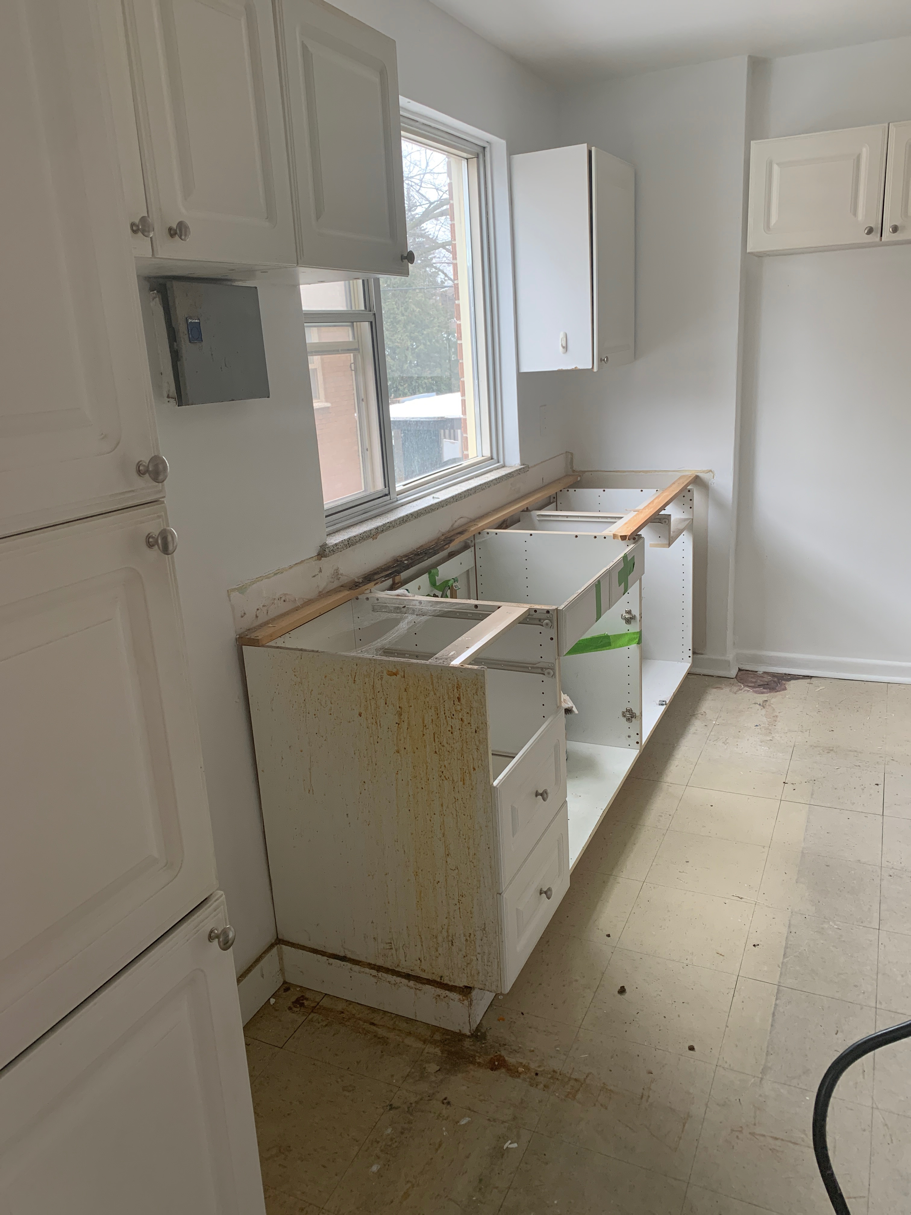 I was hired by the tenant of this rental property, with the permission of the landlord, to make some aesthetic and functional improvements to this kitchen. As it was the tenant who was paying for the work, it was important to maximize the overall impact of a limited budget.