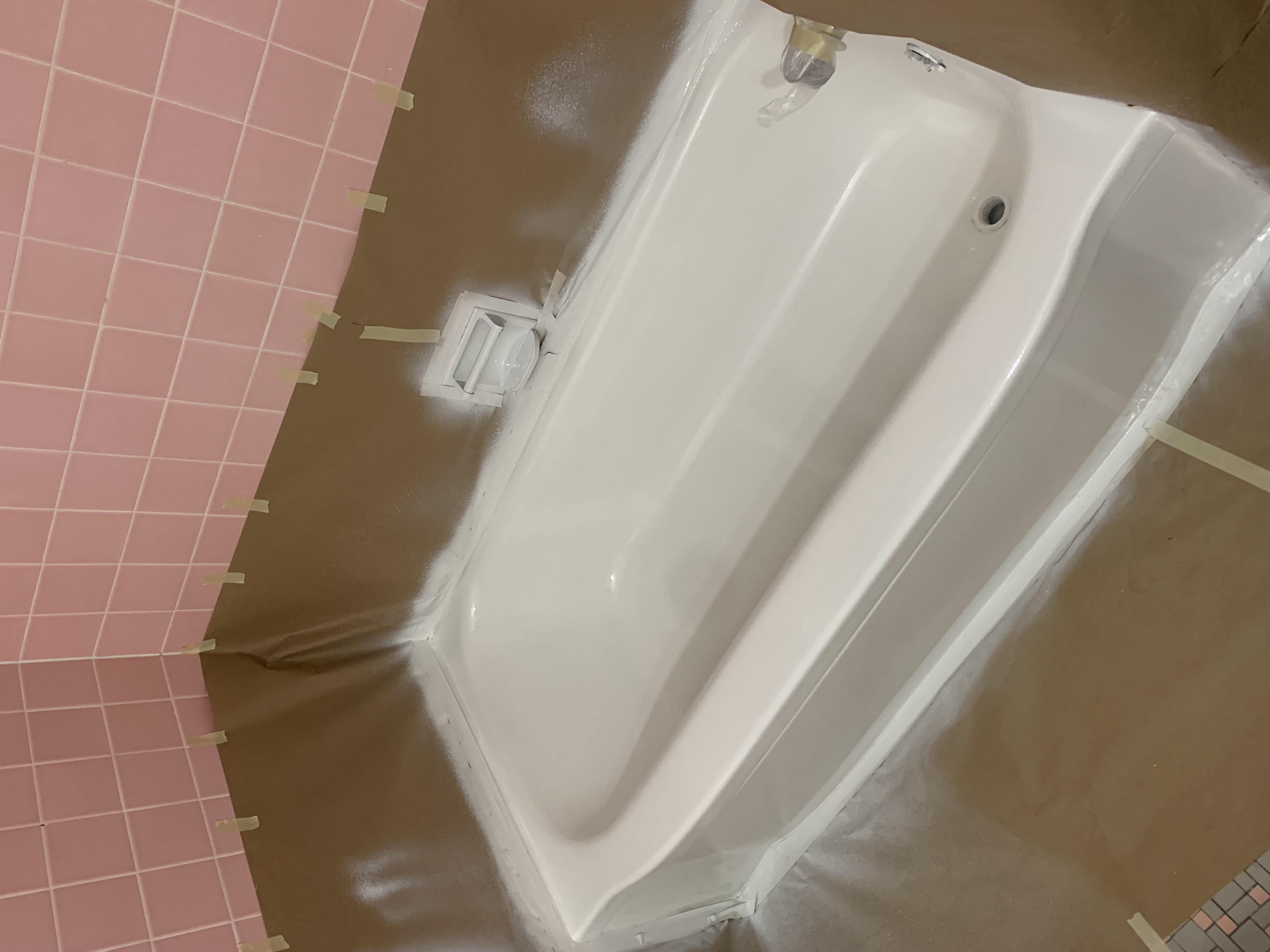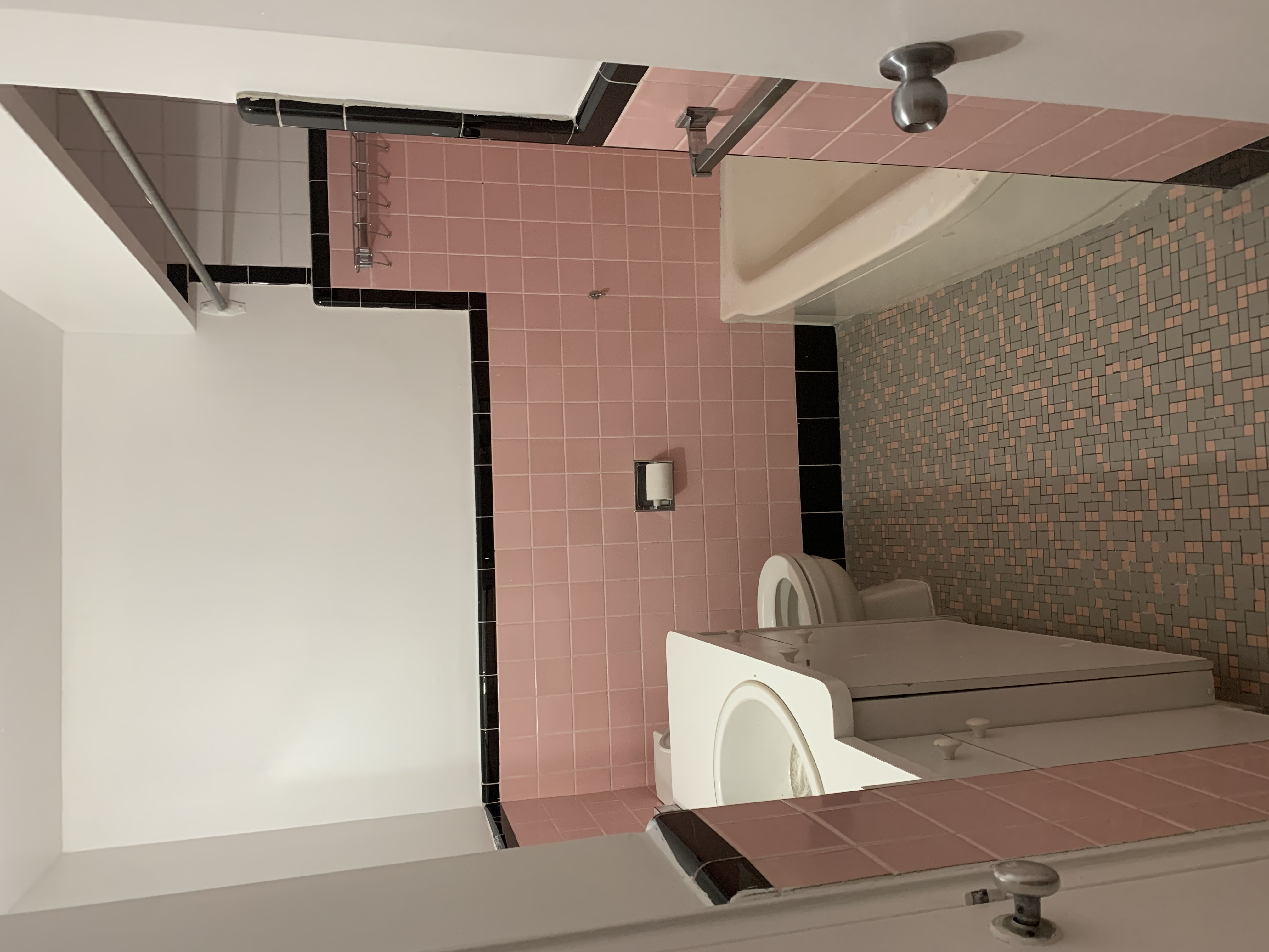 I was hired by the tenant of this rental property, with the permission of the landlord, to make some aesthetic improvements to this bathroom. The tenants hated the pink tile and wanted it gone.