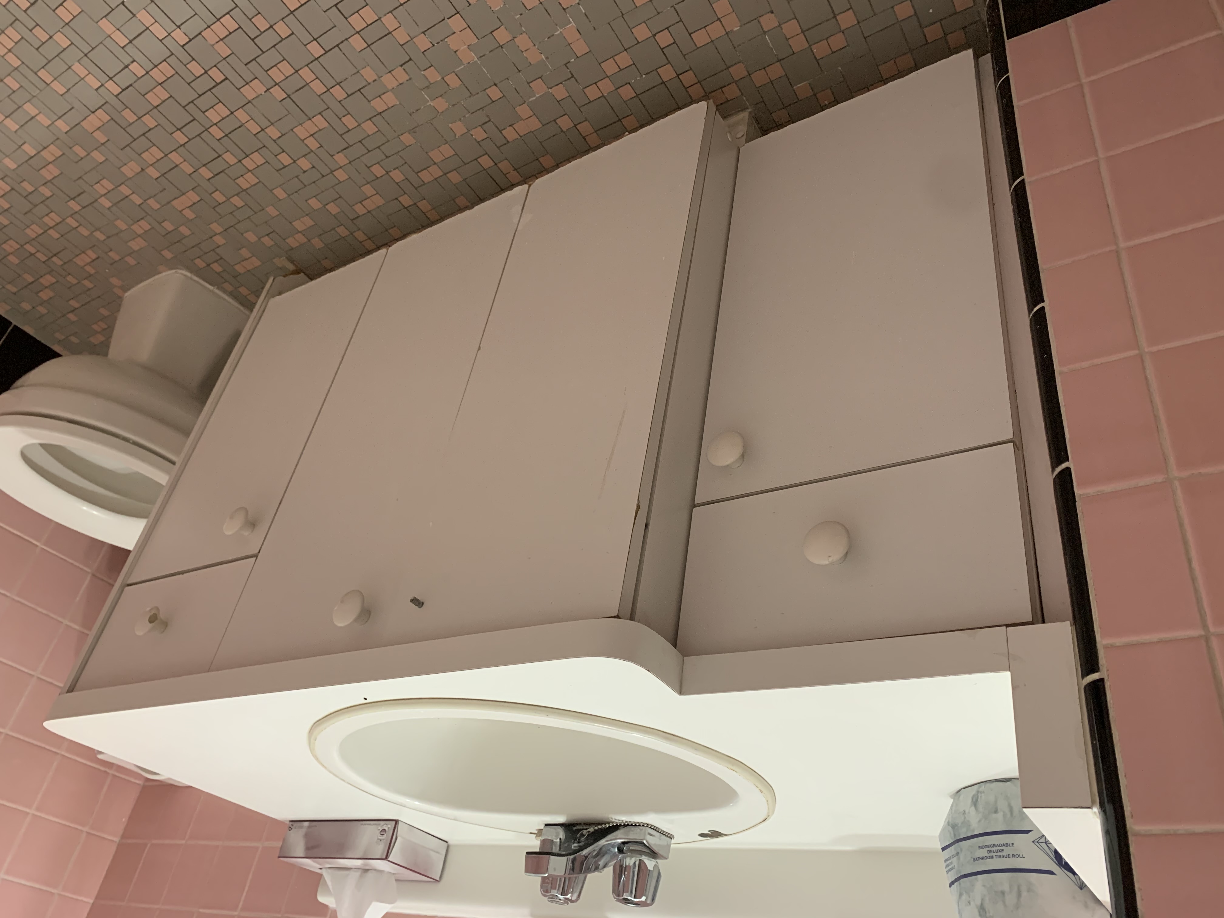 The vanity and countertop were in decent shape with only minor repairs needed.