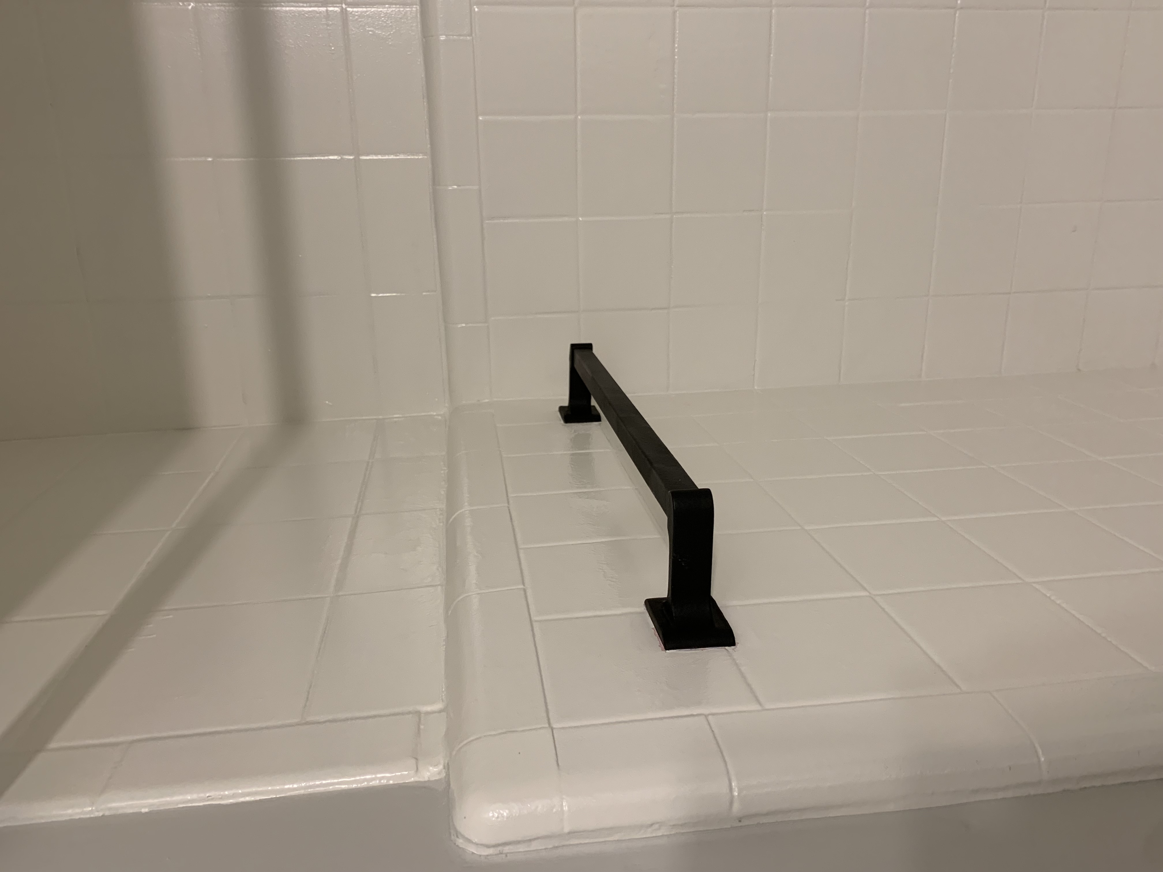 Replacing the tile was not an option given the budget. Instead, the tile was painted using a high quality two-part epoxy paint.