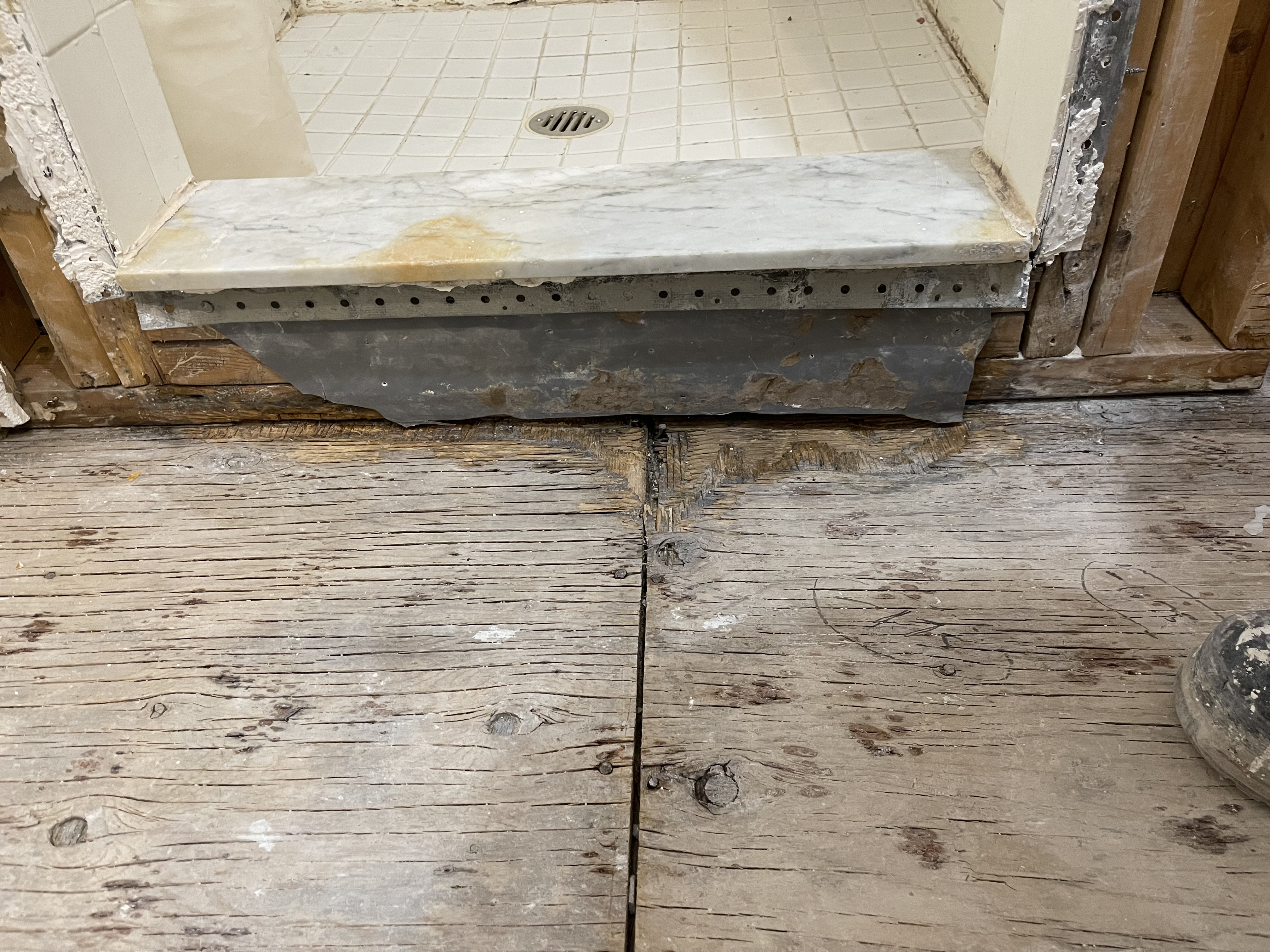 This job began with a request from the homeowner to replace the tile floor in the bathroom, because some of the tiles were cracked. Cracked tiles are typically an indicator that other issues are present.