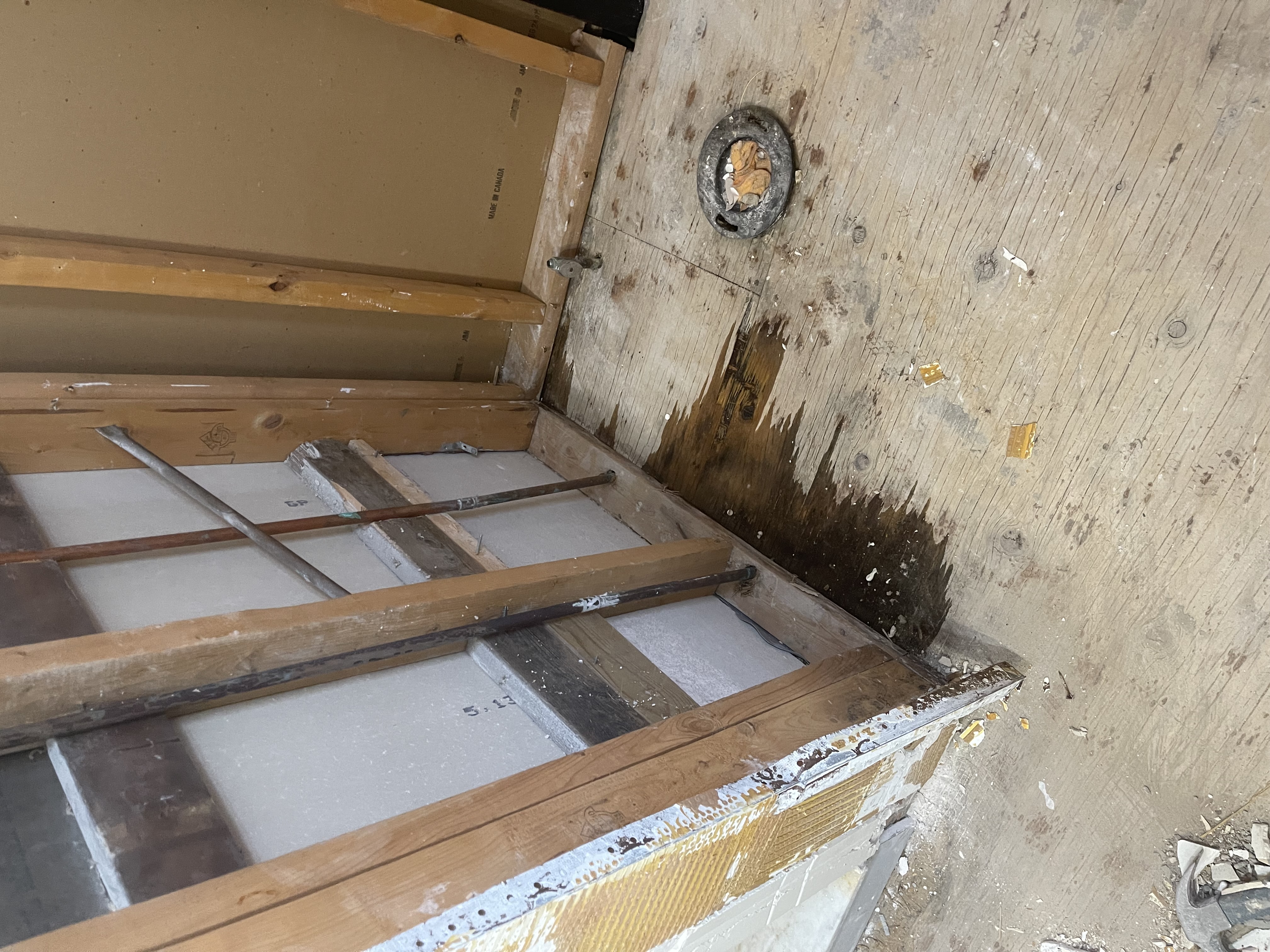 Upon removal of the floor tile, it was clear that the existing stall shower had been leaching water into the structure under the tile, for quite some time, causing significant rot in the surrounding subfloor and framing.